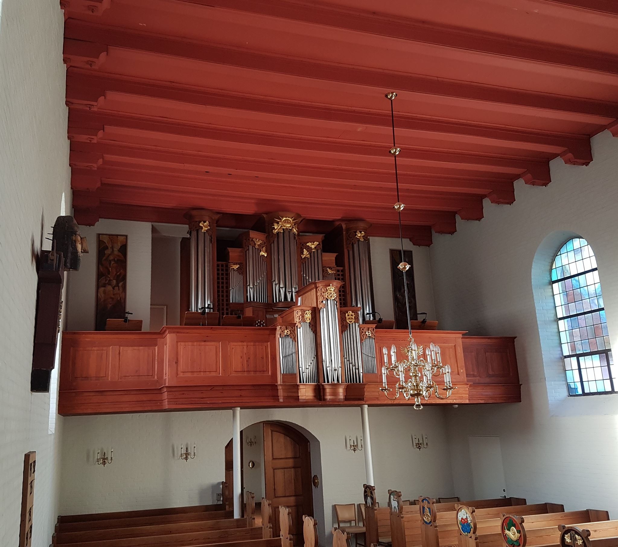 Alterpartiet er enkelt udformet og understøtter kirkens rolige helhedsindtryk. Kirken er omgivet af kirkegård, hvilket skaber en helhed mellem ceremonirum og gravsted.