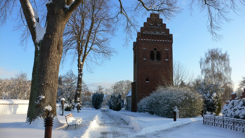 Det er en stemningsfuld middelalderkirke med hvidkalkede vægge, hvælvede lofter og klassiske bænkerækker, som giver kirkerummet et roligt, lyst og traditionelt udtryk.