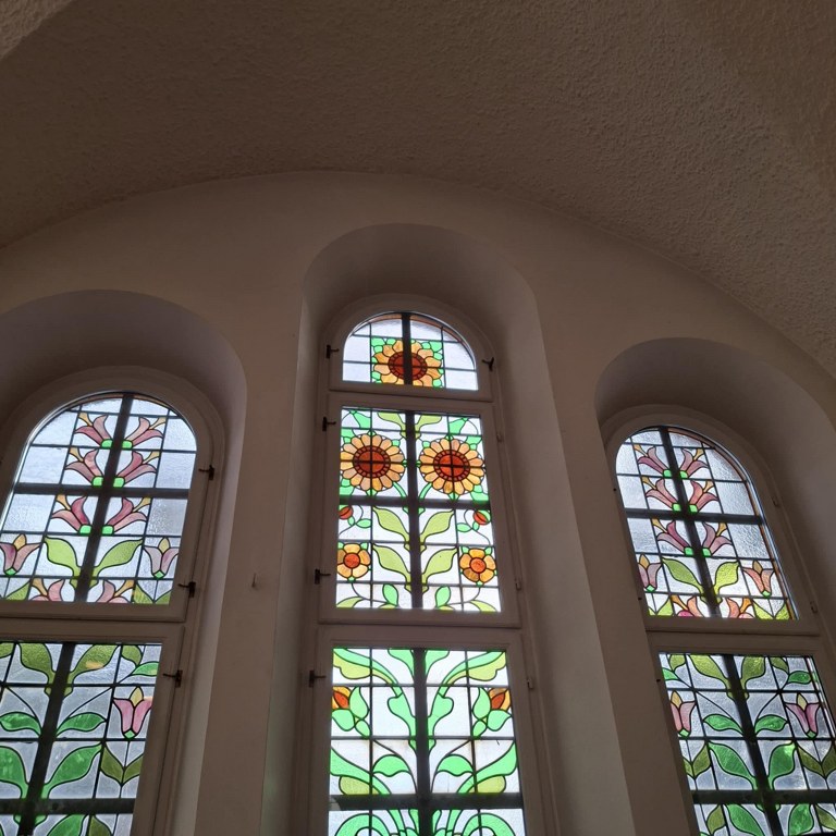 Samtidig er det en kirke, hvor adgangen kræver lidt ekstra opmærksomhed, fordi der er trin ind, og fordi gulvet skråner ned mod alteret.