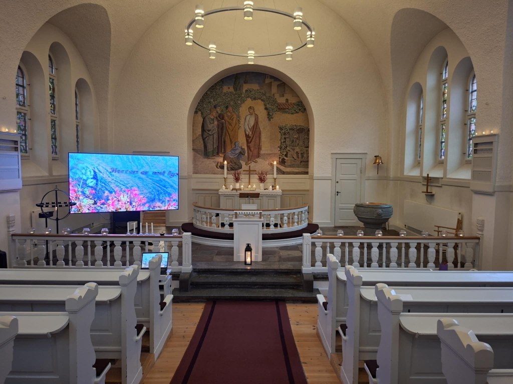 Jeg lægger først mærke til, at De Døves Kirke har en særlig ro over sig, og at rummet føles enkelt og nærværende.