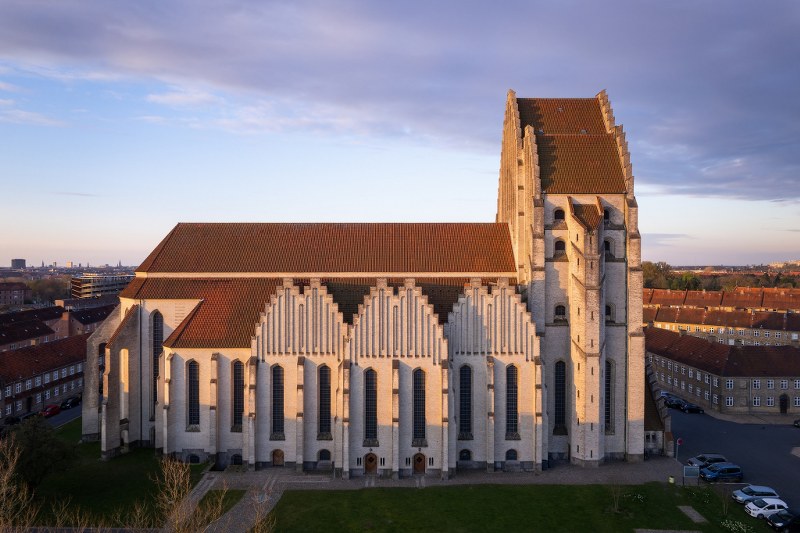 Grundtvigs Kirke er en af Danmarks mest markante kirker og blev opført som minde om N.F.S. Grundtvig. Kirken er tegnet af arkitekt P.V. Jensen-Klint, og byggeriet blev påbegyndt i 1921. Tårnet stod færdigt i 1927 og fungerede i en periode som kirkerum, inden resten af kirken blev færdiggjort i 1940 under ledelse af Kaare Klint. Kirken er opført i karakteristiske lysegule mursten og er inspireret af både gotisk arkitektur og danske landsbykirker.