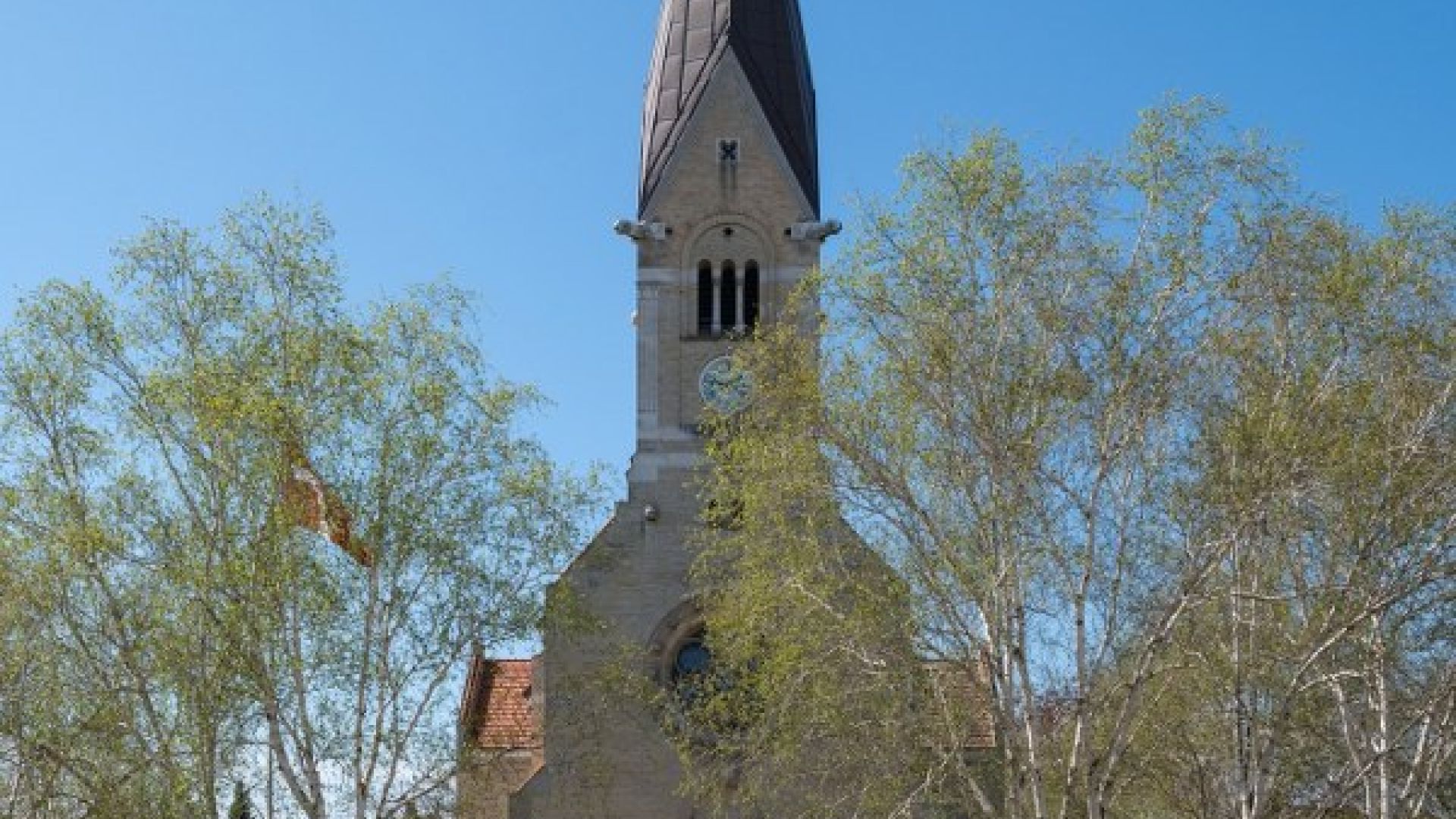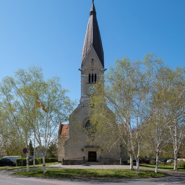 Hellerup Kirke er en stor historicistisk kirke i gule sten med rødt tegltag, korsformet grundplan og et markant tårn, som giver kirken et klassisk og monumentalt udtryk.