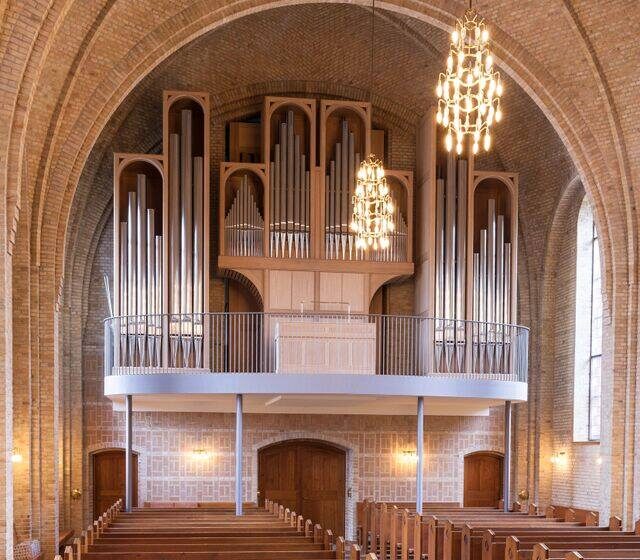 Indvendigt fremstår kirkerummet lyst og højloftet. Væggene og hvælvingerne er udført i gule fritlagte mursten, hvilket giver rummet en varm og rolig atmosfære. De høje hvælvinger og det åbne kirkerum skaber en smuk akustik og en værdig ramme om kirkelige handlinger.