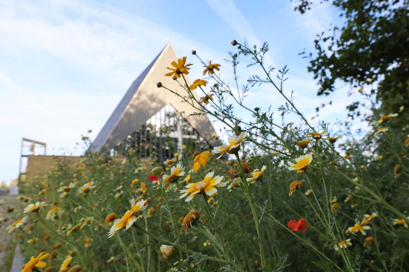 Husumvold Kirke blev indviet i 1960 og ligger smukt på en skråning ned mod Utterslev Mose i Brønshøj. Kirken er tegnet i en karakteristisk A-form og opført i gule mursten med et stort sort tag, som giver bygningen et markant og moderne udtryk.