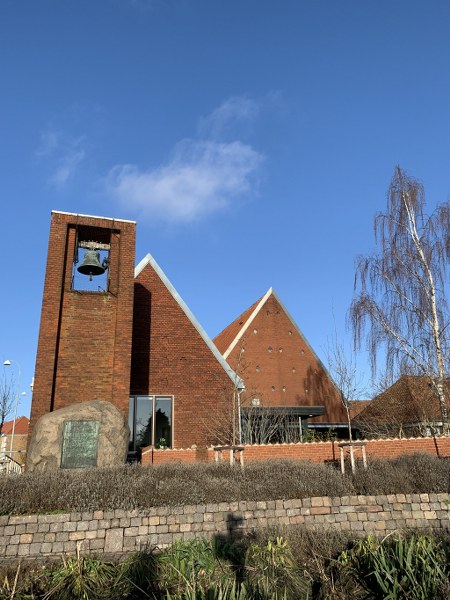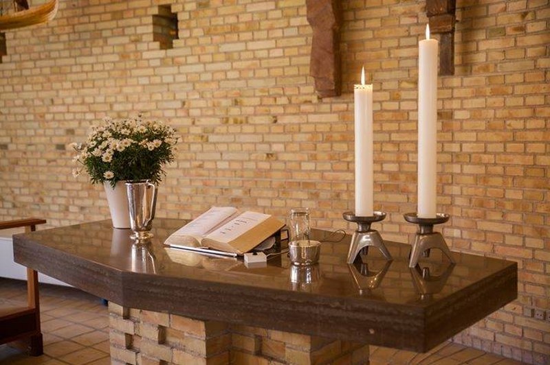 Indenfor opleves rummet lyst og roligt med en fin balance mellem det nære og det højtidelige. Det er en kirke, der giver en stilfærdig og værdig ramme om en afsked.