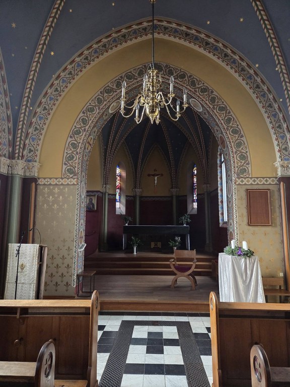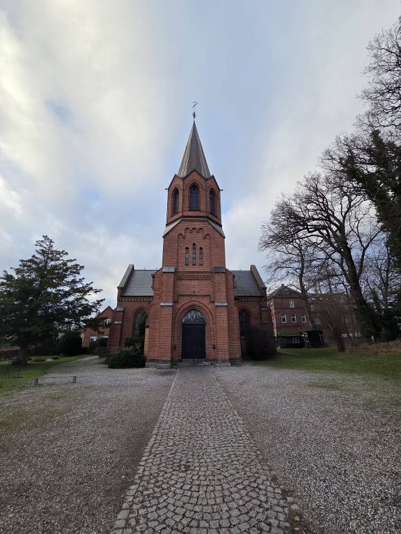 Sankt Andreas Kirke er en smuk kirke i røde mursten med hvælvet loft, farverige glasmosaikker og et karakteristisk gulv i sorte og hvide flis