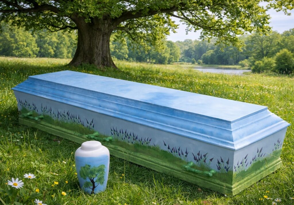 En farvet kiste, en malet kiste eller en personlig urne kan være med til at skabe en afsked, der føles mere rigtig. Det handler ikke om at gøre noget stort – men om at gøre det personligt.