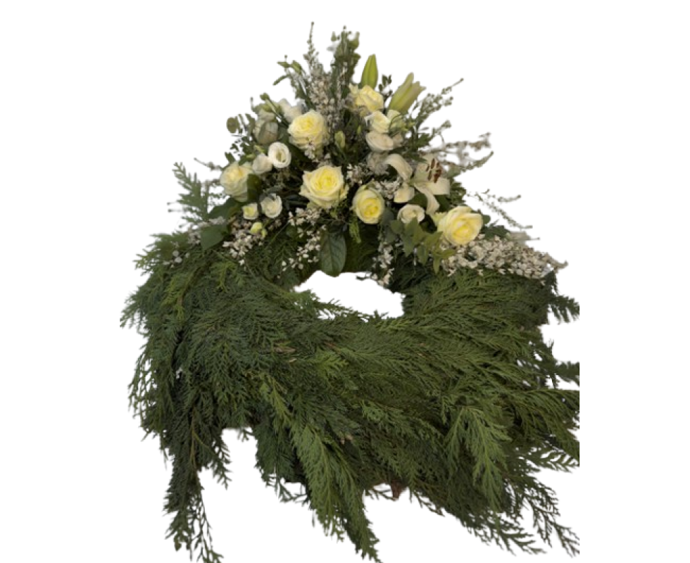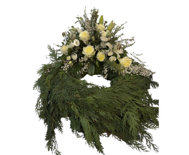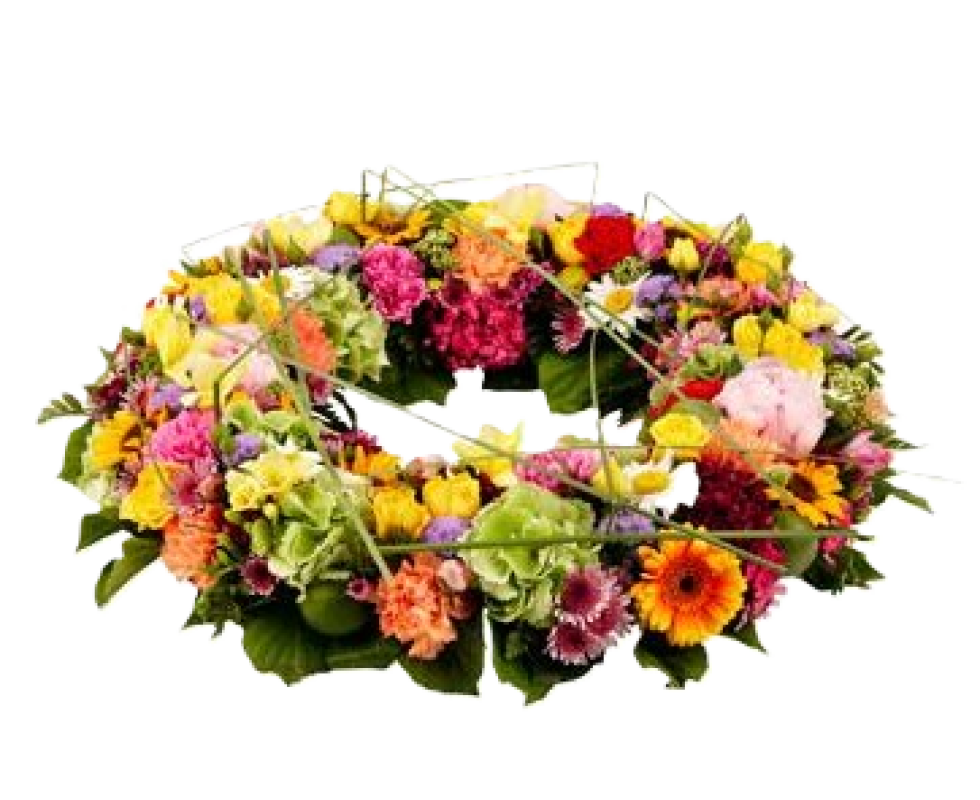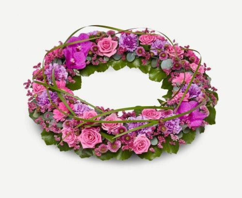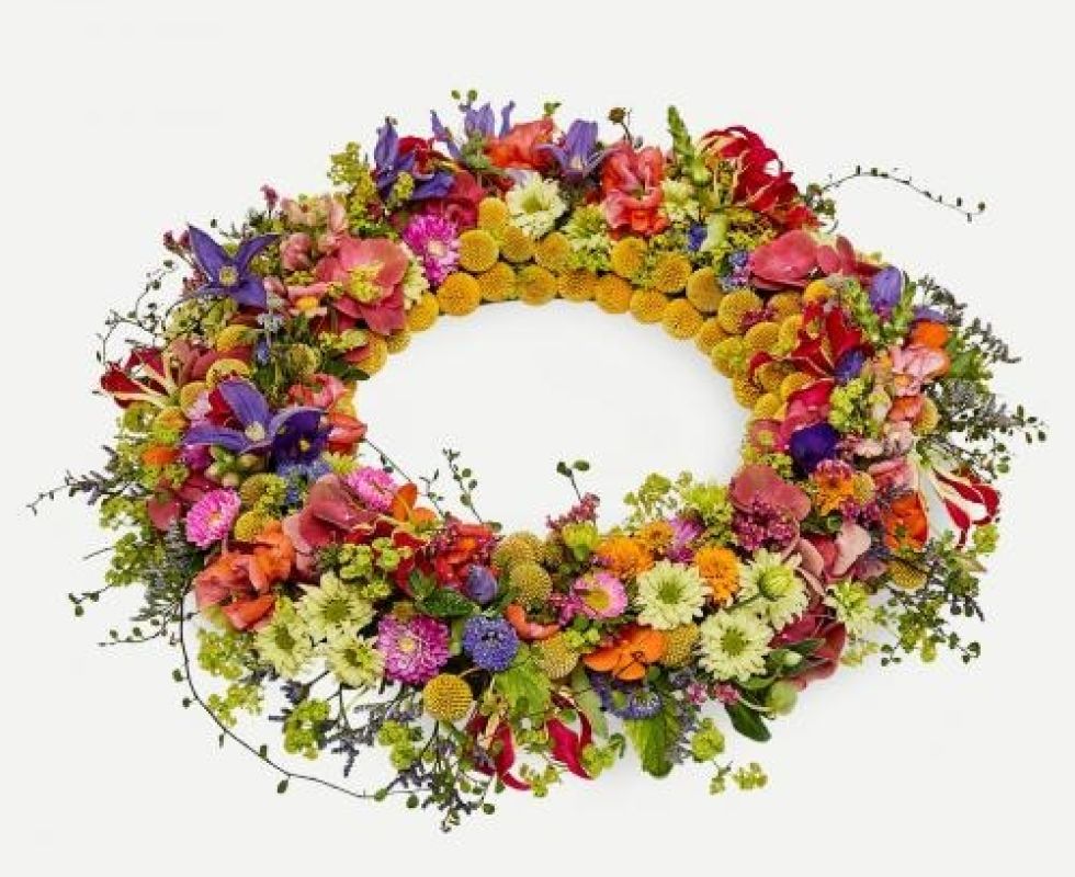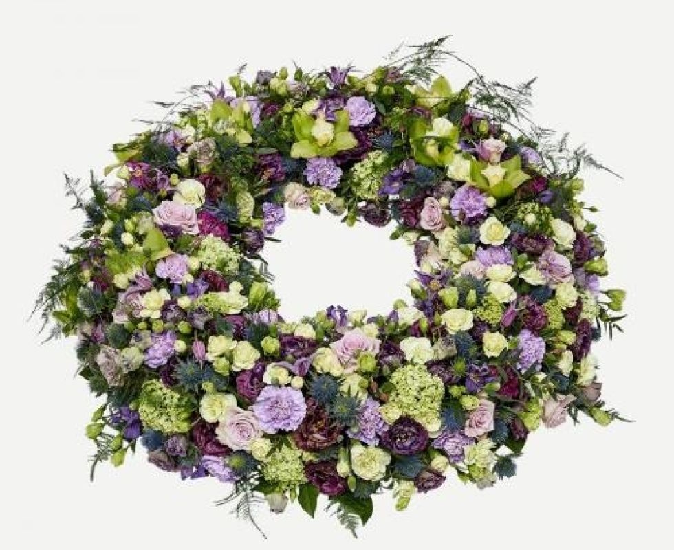 Blomsterkranse er populære begravelsesdekorationer. Kransens cirkel symboliserer livets cyklus.